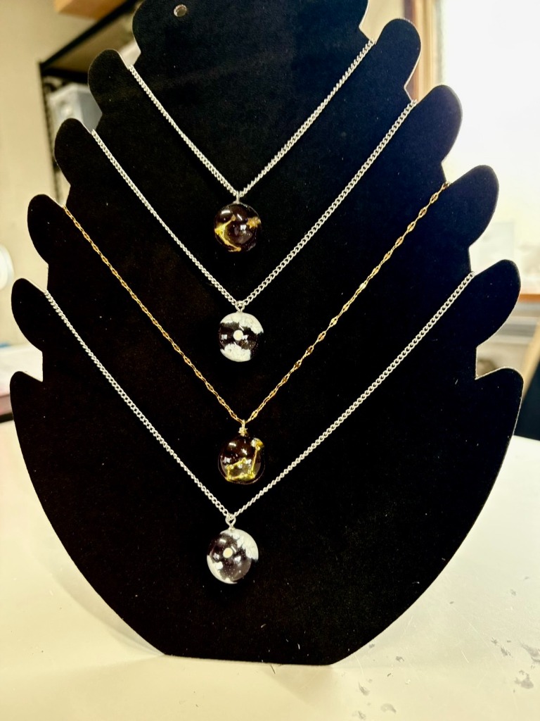 今回は、利用者さんが制作したレジンネックレスをご紹介します。
