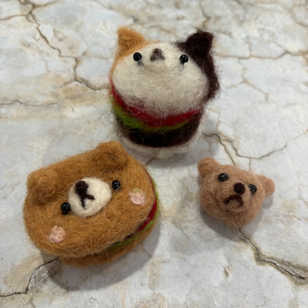 下の画像はどちらも羊毛フェルトで作成した、猫型コースターとマスコットです。