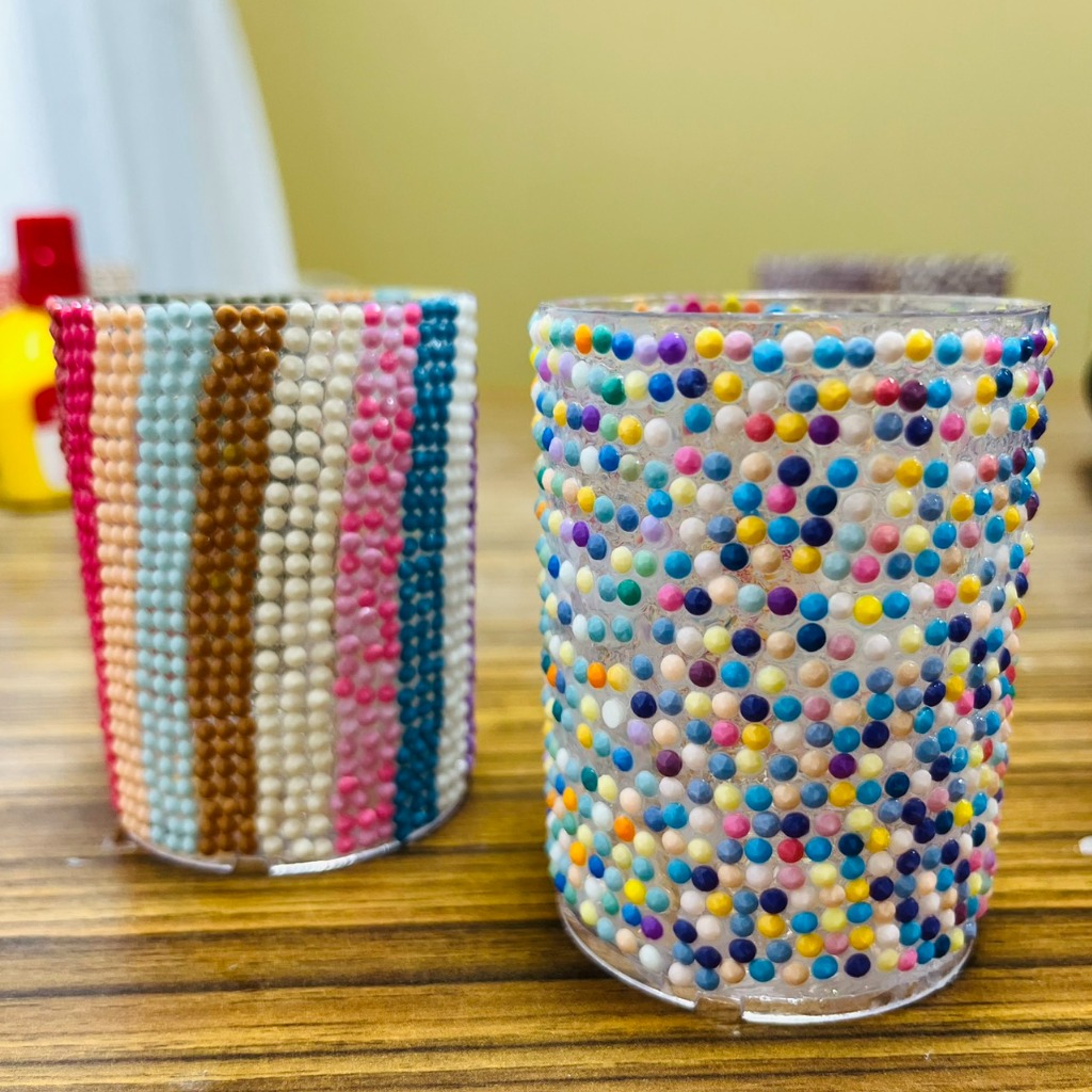 プラスチック瓶を、余っていたダイヤモンドアートのビーズで飾ってくださいました✨