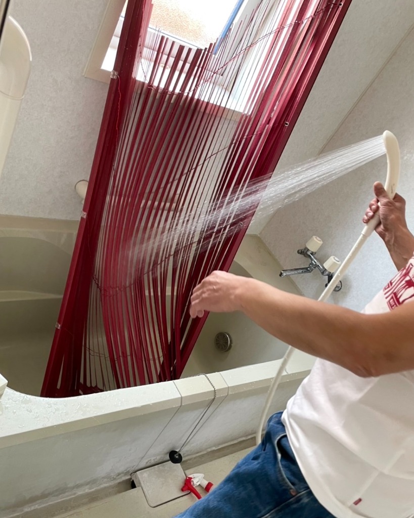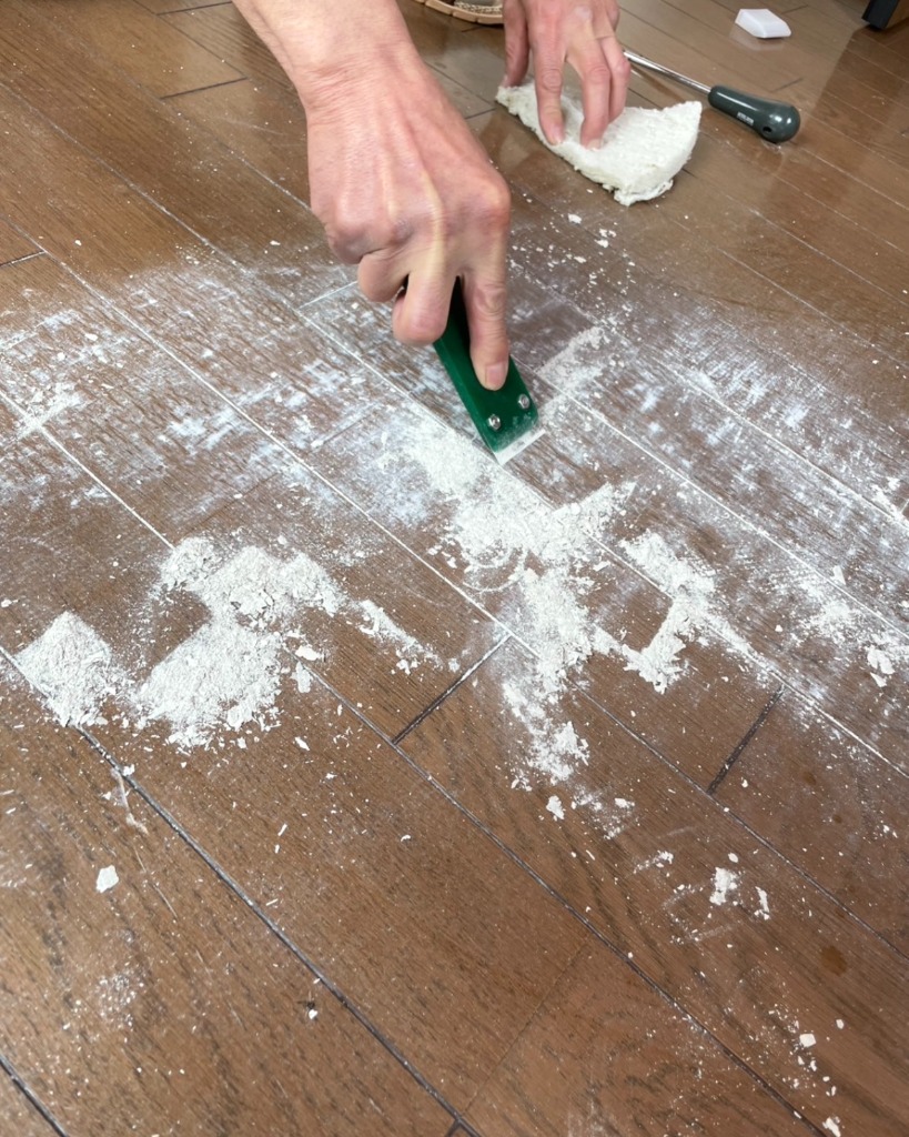 一枚目の画像は床の汚れ取りを行っており、普通の雑巾では落とせない汚れを削り取っています。