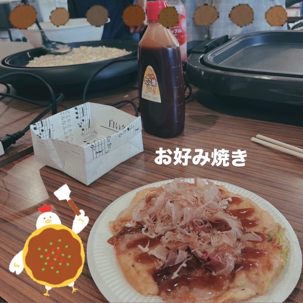 今回は「お好み焼き」「たこ焼き」「フルーツポンチ」をみんなで作って食べましたがおいしいと大人気でした♪